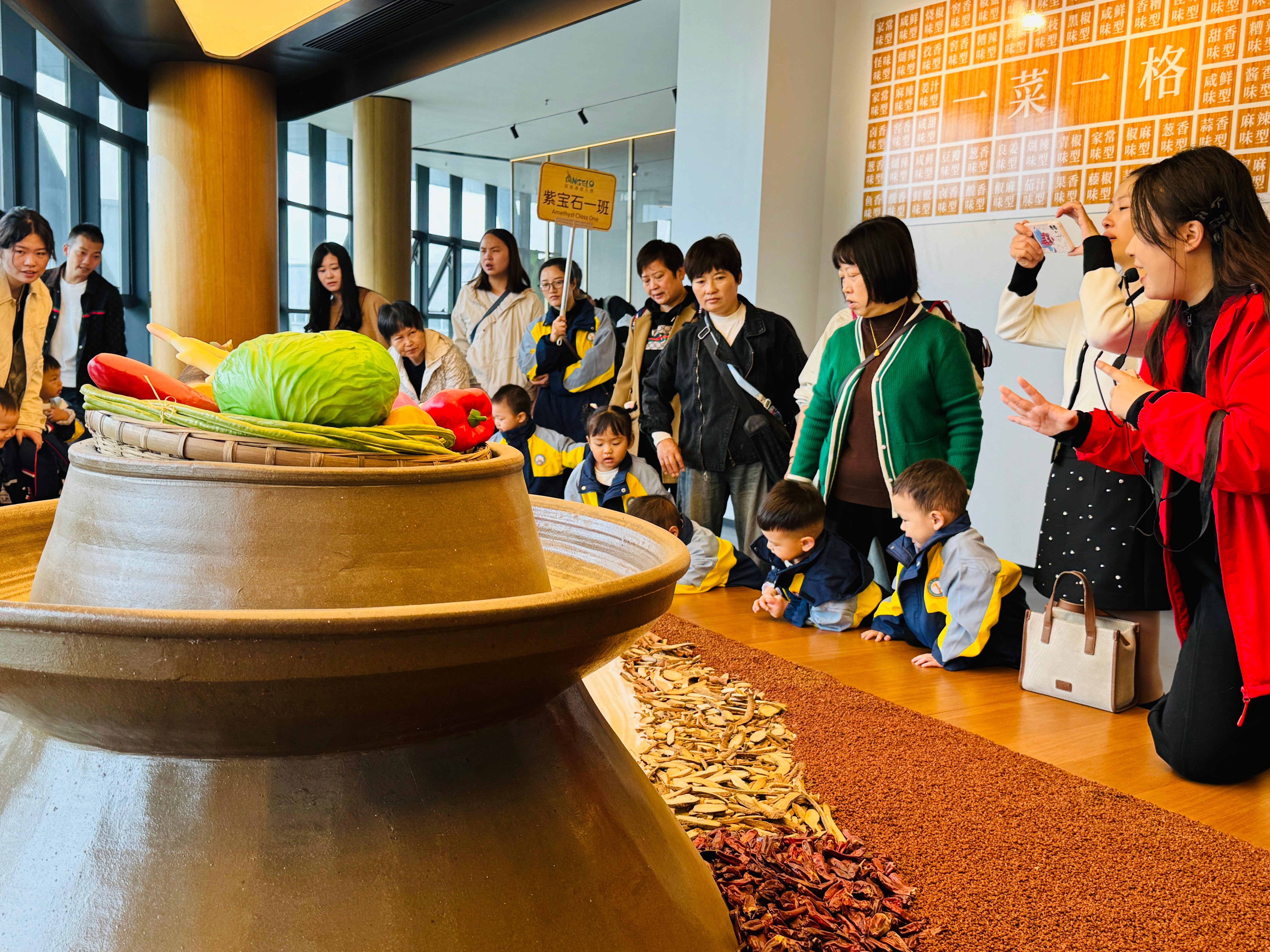 关于非遗传承,这些年,何艳平和他的同事们在眉山市图书馆、青少年宫、儿童福利院、三苏祠旅游中心、非遗中心等机构常态化开展传习活动,也依托眉山东坡泡菜非遗工坊向学生、机构、团体等宣传东坡泡菜制作技艺,推动东坡泡菜制作技艺的传承和传播。就在采访当天,成都市新都区大丰中学约600名学生来到非遗工坊开展研学,了解泡菜相关知识,学做一坛泡菜,并带回家。对孩子们来说,带回家的泡菜水需要慢慢养,对中华优秀传统文化的喜爱也得以滋养,并因此茁壮。