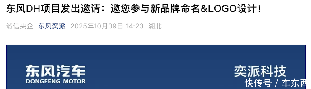 根据官方公众号,东风奕派明确了DH项目的品牌命名和LOGO设计准则。