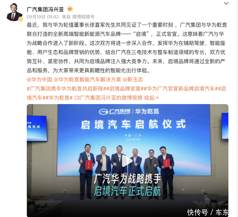 广汽集团与华为正式官宣启境